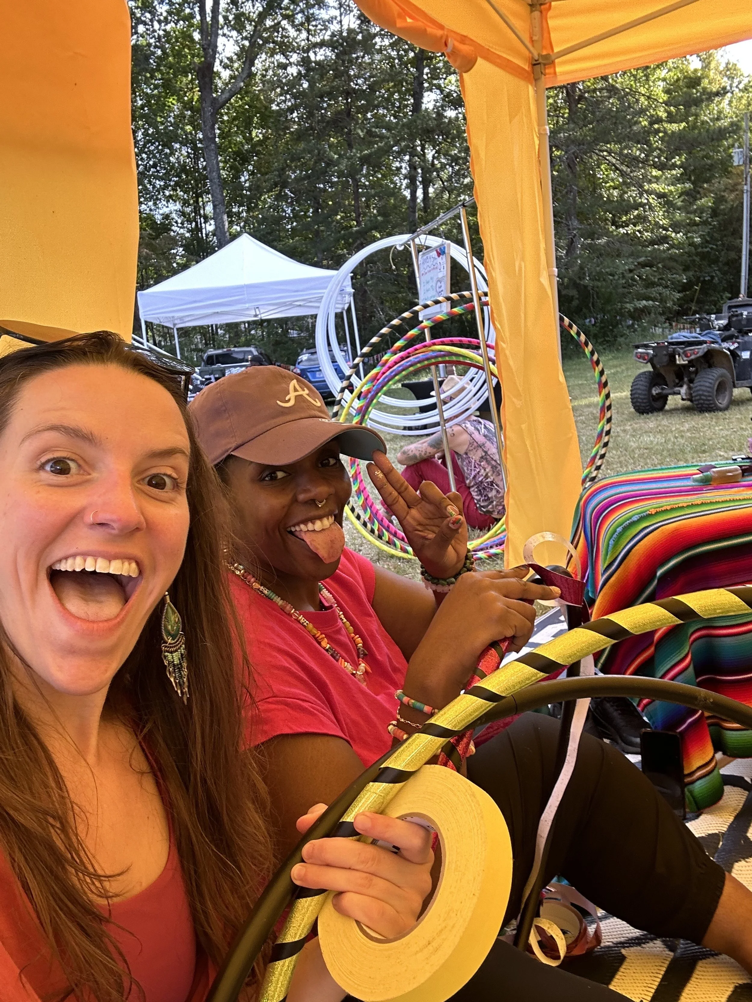 A haven for handmade hula-hoops and flow props, community connection, cozy lounging, and somatic exploration—the lounge made its debut in September 2023, and has been featured as a vendor, workshop host, and community partner for arts and holistic wellness events across Charlotte, NC and surrounding areas.